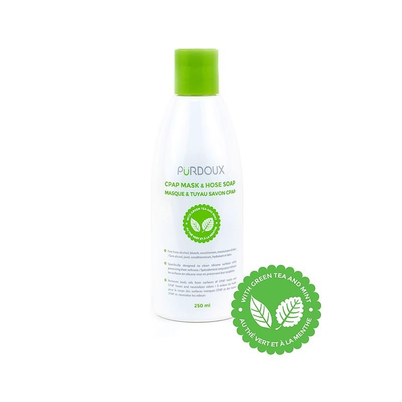 Keep your CPAP equipment fresh and clean with CPAP Mask & Hose Soap infused with soothing green tea and mint extracts, designed to gently cleanse while leaving a refreshing scent.