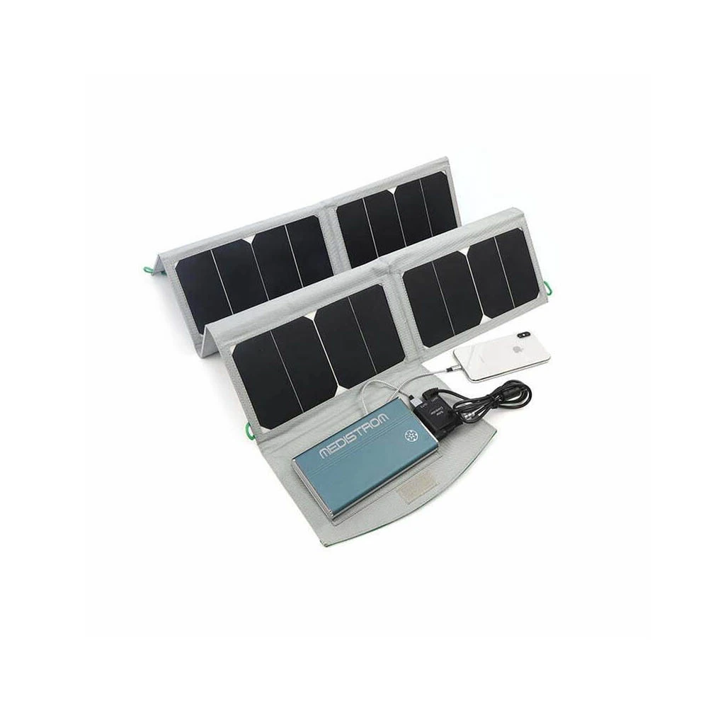The 50W Solar Panel is a portable charging solution designed for Medistrom Pilot‑12 Lite, Pilot‑24 Lite and Pilot Flex batteries. It allows you to recharge your battery using solar energy, making it perfect for camping, outdoor adventures, or areas without reliable electricity.